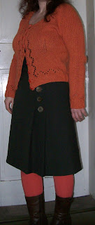 Heute trage ich meinen neuen Wollrock. Inspiriert von Abendsterns Wickelrock habe ich ihn seitlich mit großen Perlmuttknöpfen verziert.